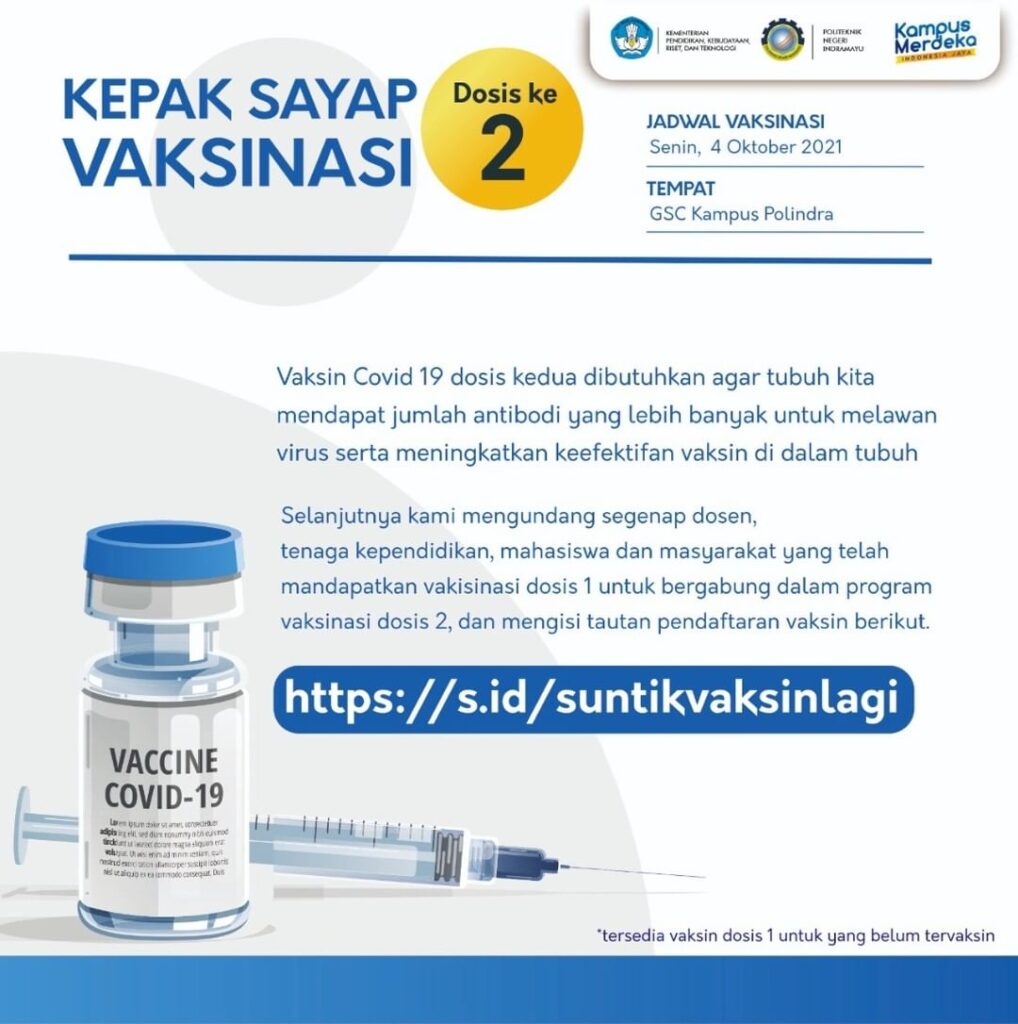 Ayo Vaksin Lagii Politeknik Negeri Indramayu bersama Dinas Kesehatan Kabupaten Indramayu akan menyelenggarakan vaksinasi Dosis Kedua yang akan dilakukan pada Senin, 4 Oktober 2021 di Gedung Student Center Polindra Kampus 1 mulai pukul 08.00 WIB. .. Pendaftaran vaksin Dosis Kedua ataupun Dosis Kesatu melalui link s.id/suntikvaksinlagi .. Daripada makan pizza Itali .. Lebih baik makan […]