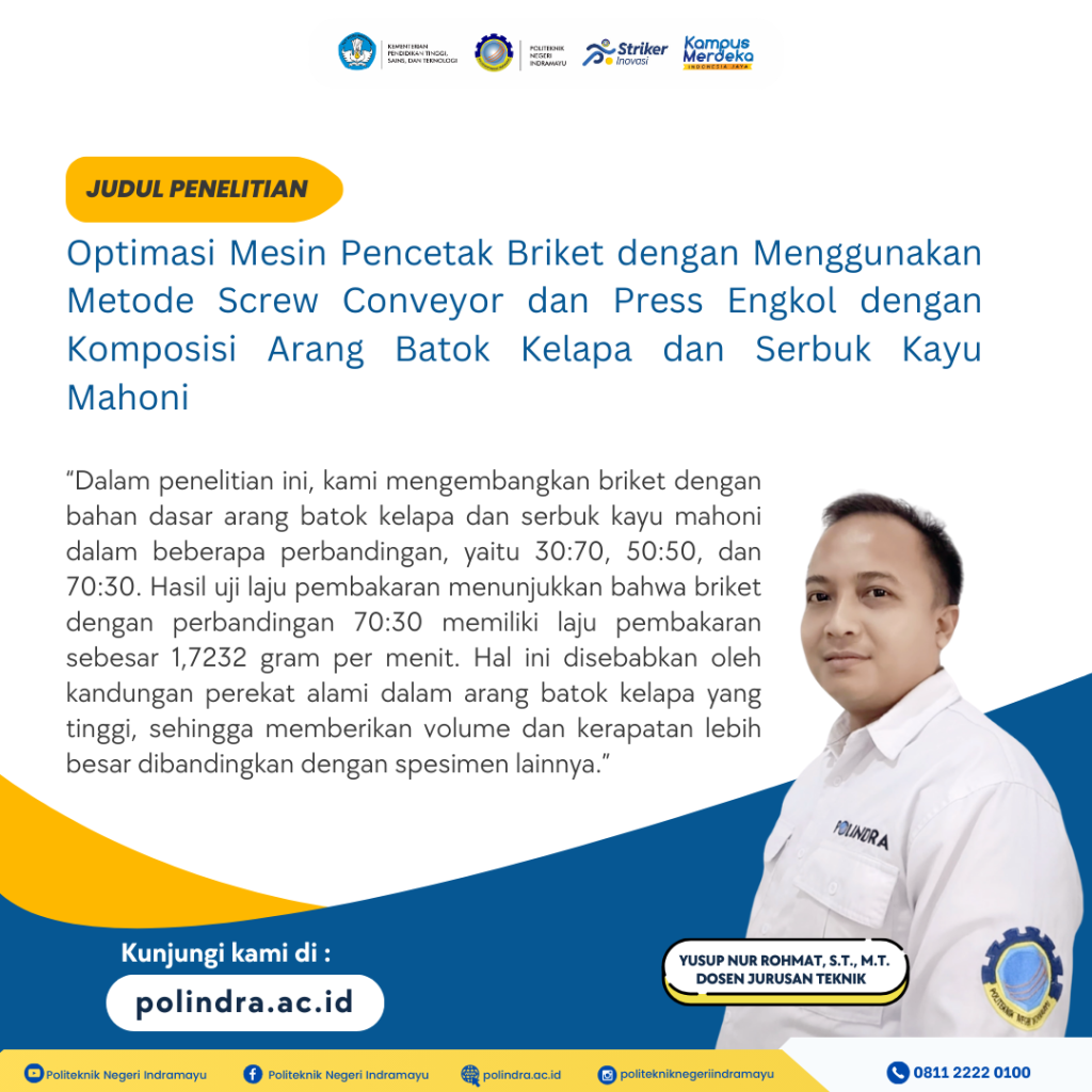 Penelitian Briket Alternatif: Solusi Mengurangi Ketergantungan pada Bahan Bakar Fosil dan Peluang Pasar Ekspor Seiring dengan meningkatnya penggunaan energi bahan bakar setiap tahunnya, Indonesia menghadapi tantangan besar dalam menjaga pasokan cadangan bahan bakar fosil yang semakin menipis. Sebagai solusi atas permasalahan ini, tim peneliti dari Politeknik Negeri Indramayu, Politeknik Negeri Bandung, dan Politeknik Negeri Jakarta […]