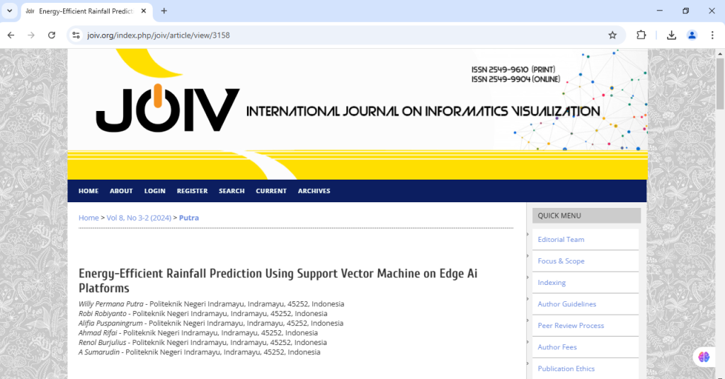 Selamat dan Sukses atas Publikasi di JOIV: International Journal on Informatics Visualization (Scopus Q3) Prestasi gemilang kembali diraih oleh para akademisi Politeknik Negeri Indramayu dalam bidang penelitian dan publikasi ilmiah. Direktur Politeknik Negeri Indramayu, Ir. Rofan Aziz, S.T., M.T., IPM., menyampaikan selamat dan apresiasi setinggi-tingginya kepada seluruh tim peneliti yang telah berhasil menerbitkan makalah mereka […]