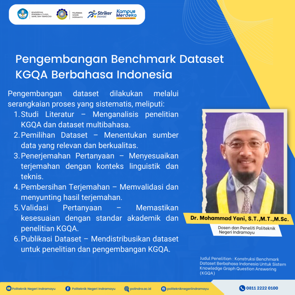 Penelitian Pengembangan Benchmark Dataset KGQA Berbahasa Indonesia untuk Kemajuan Riset Teknologi Dalam satu dekade terakhir, penelitian mengenai sistem Knowledge Graph Question Answering (KGQA) dalam bahasa Indonesia masih menghadapi kendala besar akibat ketiadaan benchmark dataset yang memadai. Hal ini menyebabkan penelitian di bidang tersebut tidak berkembang secara optimal dan kurang kompetitif dibandingkan dengan penelitian serupa dalam […]