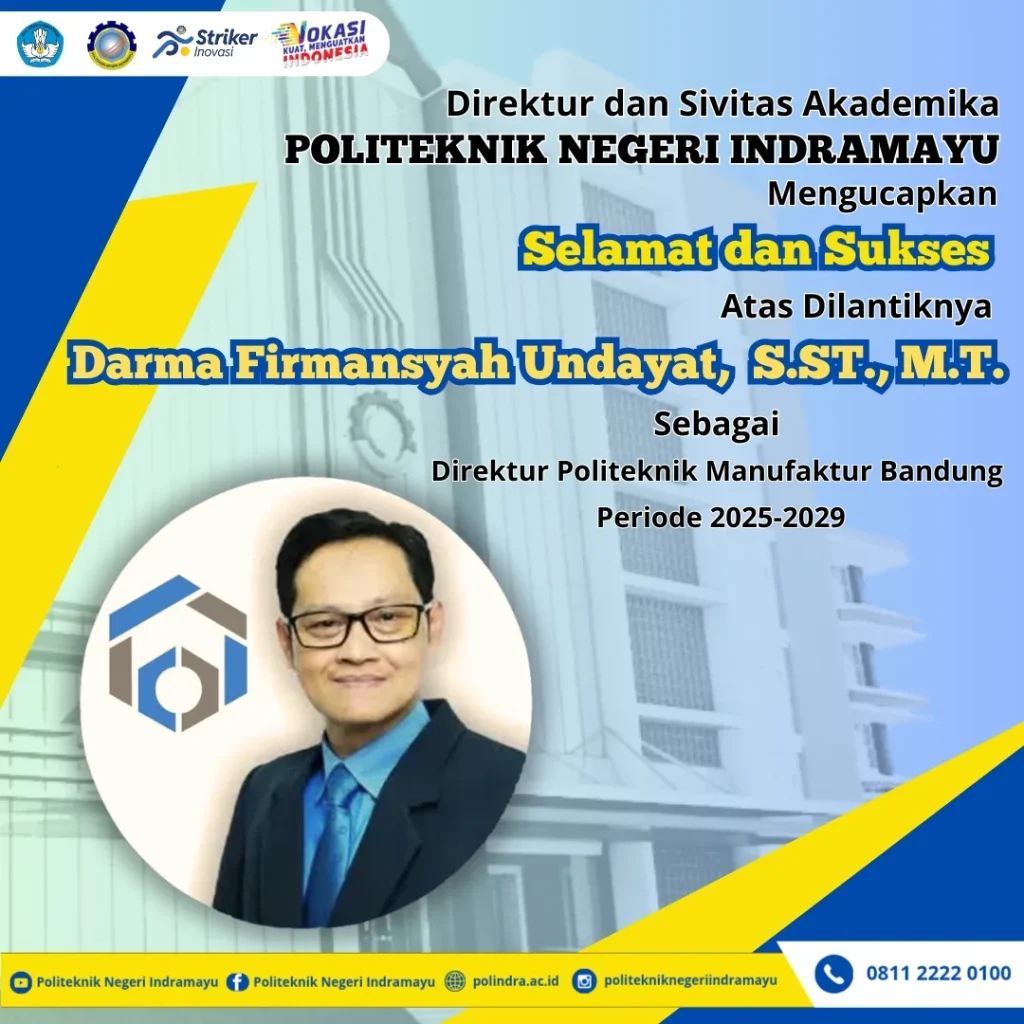 Selamat atas Pelantikan Direktur Politeknik Manufaktur Bandung Direktur beserta sivitas akademika Politeknik Negeri Indramayu (Polindra) dengan penuh kebanggaan mengucapkan selamat dan sukses atas dilantiknya Darma Firmansyah Undayat, S.ST., M.T. sebagai Direktur Politeknik Manufaktur Bandung untuk periode 2025-2029. Dalam ucapan resminya, Direktur Politeknik Negeri Indramayu menyampaikan harapan agar di bawah kepemimpinan beliau, Politeknik Manufaktur Bandung semakin […]