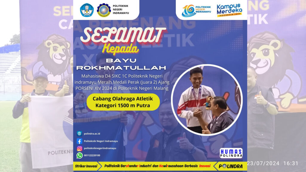 Politeknik Negeri Malang menjadi saksi bisu prestasi luar biasa yang ditorehkan oleh mahasiswa Politeknik Negeri Indramayu (Polindra) dalam ajang Pekan Olahraga dan Seni Nasional (PORSENI) XIV tahun 2024. Keberhasilan ini mencakup berbagai bidang, mulai dari seni hingga olahraga, menunjukkan keberagaman talenta yang dimiliki oleh para mahasiswa Polindra. Salah satu prestasi paling gemilang diraih oleh Agung […]