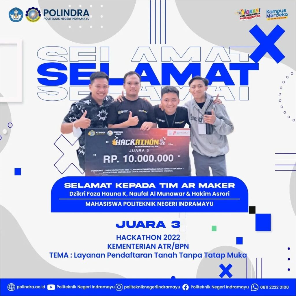 Tim ARMaker Politeknik Negeri Indramayu (POLINDRA) menjadi Juara 3 pada Kompetisi Hackathon yang diselenggarakan oleh Kemenetrian Agraria dan Tata Ruang/Badan Pertanahan Nasional (Kementerian ATR/BPN) dengan tema “Layanan Pendaftaran Tanah Tanpa Tatap Muka”, kompetisi ini dihelat pada 4-6 November 2022 di Hotel Pullman, Jakarta, dalam rangka menyemarakan Hari Agraria dan Tata Ruang (HANTARU) Tahun 2022. Menurut […]
