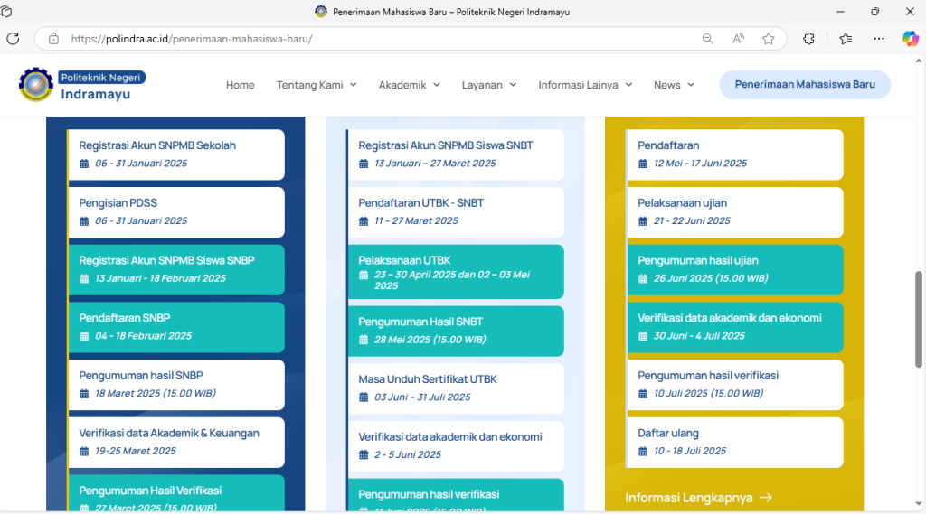 “Kami mengimbau kepada seluruh pendaftar untuk secara berkala mengecek informasi pengumuman hasil SNBP 2025 melalui laman resmi https://snpmb.bppp.kemdikbud.go.id/ atau situs resmi Polindra di https://polindra.ac.id/. Hal ini penting untuk memastikan bahwa para pendaftar mendapatkan informasi yang valid dan tepat waktu,” ujar Ir. Badruzzaman.