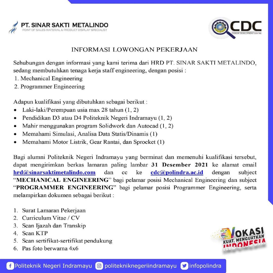 Informasi Lowongan Pekerjaan PT Sinar Sakti Metalindo