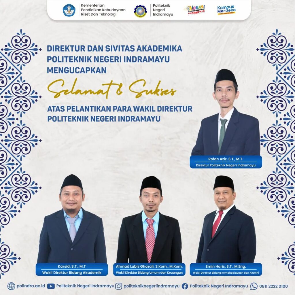 POLINDRA – Direktur Politeknik Negeri Indramayu (Polindra), Rofan Aziz, S.T., M.T. melantik tiga pejabat tinggi untuk menempati posisi wakil direktur dalam Polindra.